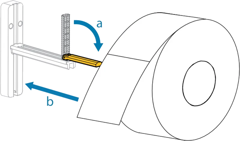 - Vouw de media guide omhoog en schuif deze naar binnen totdat deze bijna de rand van de rol raakt.